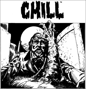 Welcome to the Chill WikiChill is a role-playing game that captures the feel of 20th-century horror films.[1] Players take on the role of envoys,[2] members of a secret organization known as S.A.V.E. that tracks down and eliminates evil in the world. SettingChill is a horror role-playing game inspired by Shelley, Stoker, and Poe, where usual foes are vampires, werewolves, mummies, ghosts, goblins, and ghouls.[3] Players take on the role of envoys,[2] members of a secret organization known as S.A.V.E. that tracks down and eliminates evil in the world. EditionsThe game was originally produced by a company called Pacesetter Ltd.[1] Once Pacesetter ceased operations in 1986, Chill was bought in 1990 by Mayfair Games. At Mayfair, the game was published until 1993, when the executives of the company decided to no longer publish RPGs and instead focus on board games. A total of 23 official modules (adventure packs and rules companions) were released by Chill's publishers between 1984 and 1993. Chill and some modules were translated into Swedish and published under the name Chock between 1985 and 1987 by Target Games. Several years ago a third edition was announced by OtherWorld Creations[4] but never was released. ReceptionReceiving 7 out of 10, the game received a mixed review in issue 61 of White Dwarf magazine. The gameplay was felt to be fairly slow and lacking in scares; furthermore, Chill's significance was lessened as Call of Cthulhu had already paved the way for horror-based role-playing games.[5] S.A.V.E.In Chill, S.A.V.E. (Societas Argenti Viae Eternitata, or, The Eternal Society of the Silver Way) is a secret society that is dedicated to protecting innocents from the creatures of the Unknown.[6] Agents of SAVE are called envoys.[1] ProductsNumerous products were published for the first two editions of Chill. Pacesetter edition